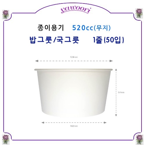 (샘)종이무지용기(520cc)(50*20줄)1박스