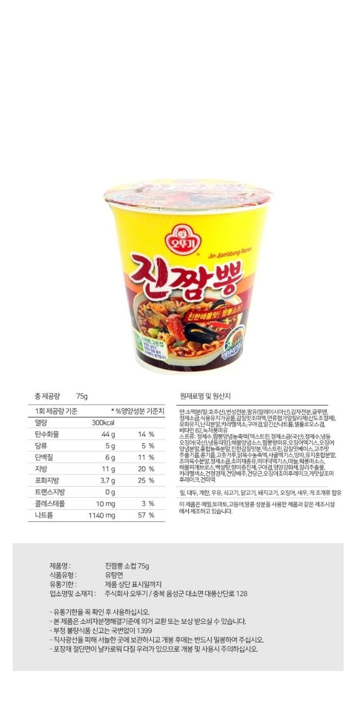 • 위펀)오뚜기)진짬뽕소컵75g(6)