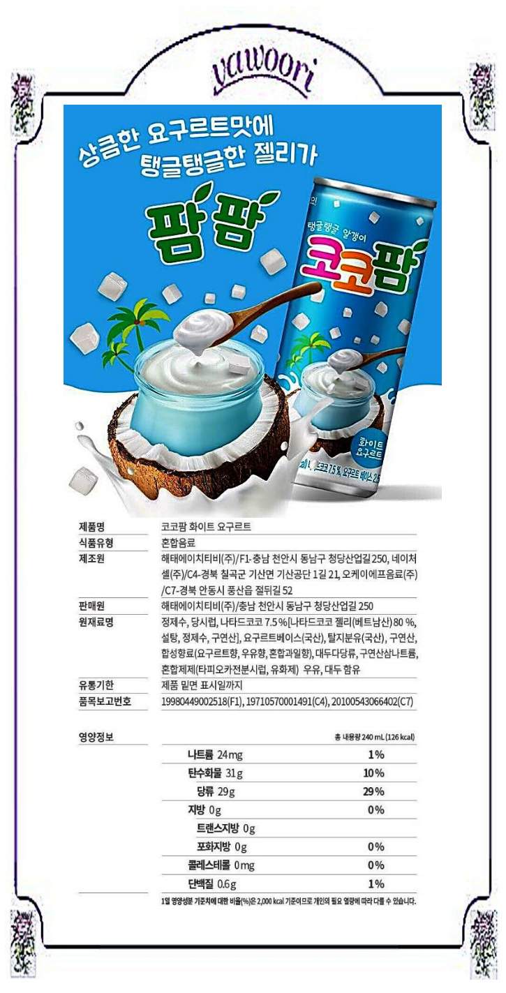 해태음료)코코팜화이트 240캔x30_CP4281