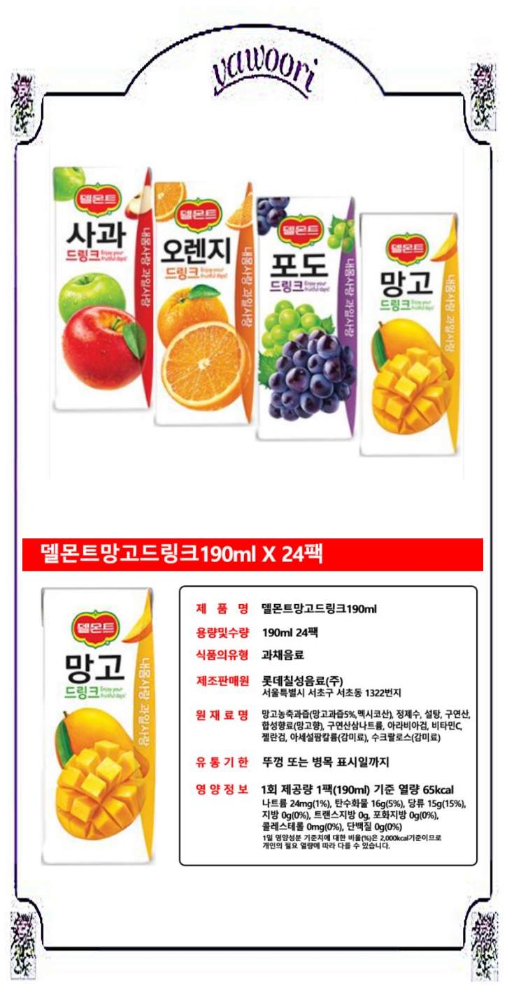 • 롯데칠성)델몬트망고드링크190팩(32)_11335@