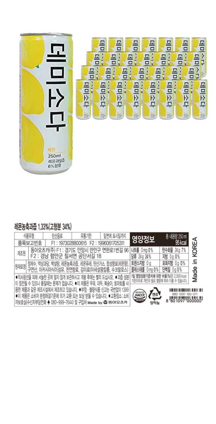 • 동아)데미소다캔(레몬)250x30