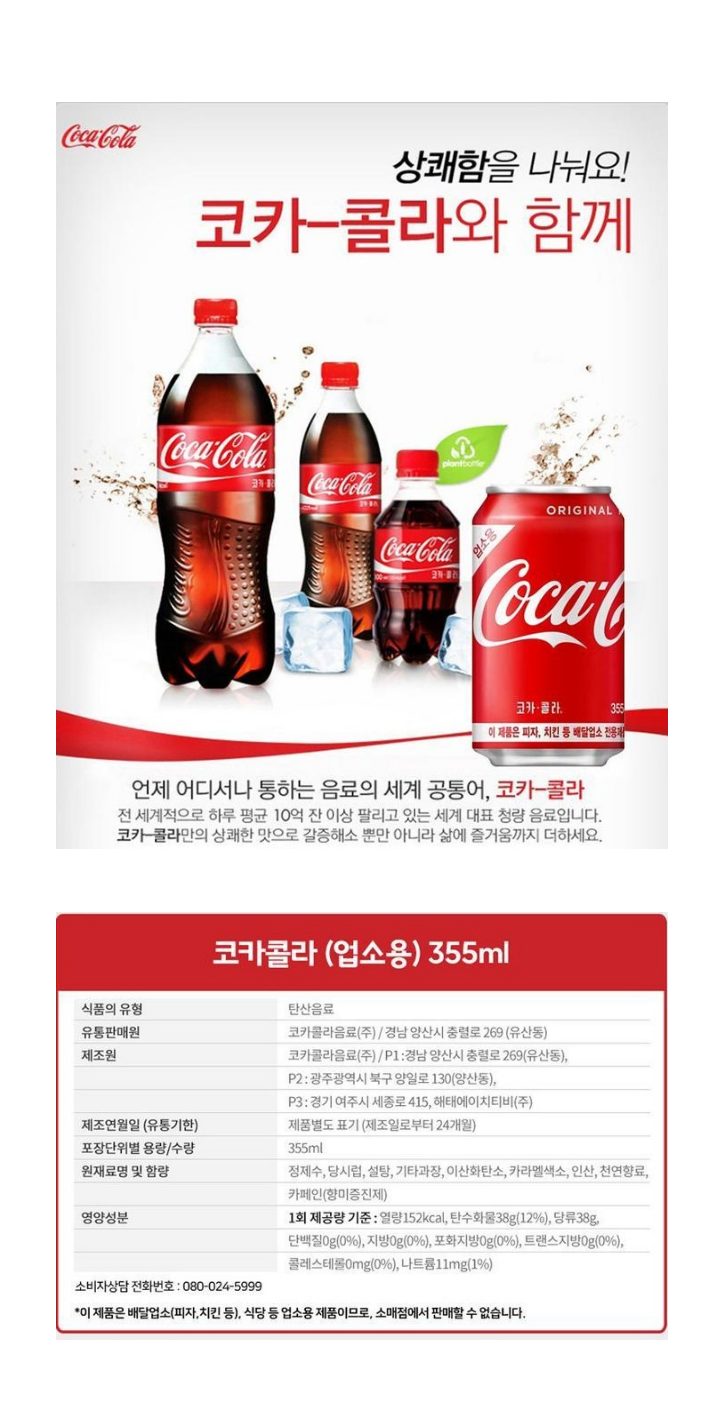 • 코카)콜라 355캔(업소용)x24입_CC0448