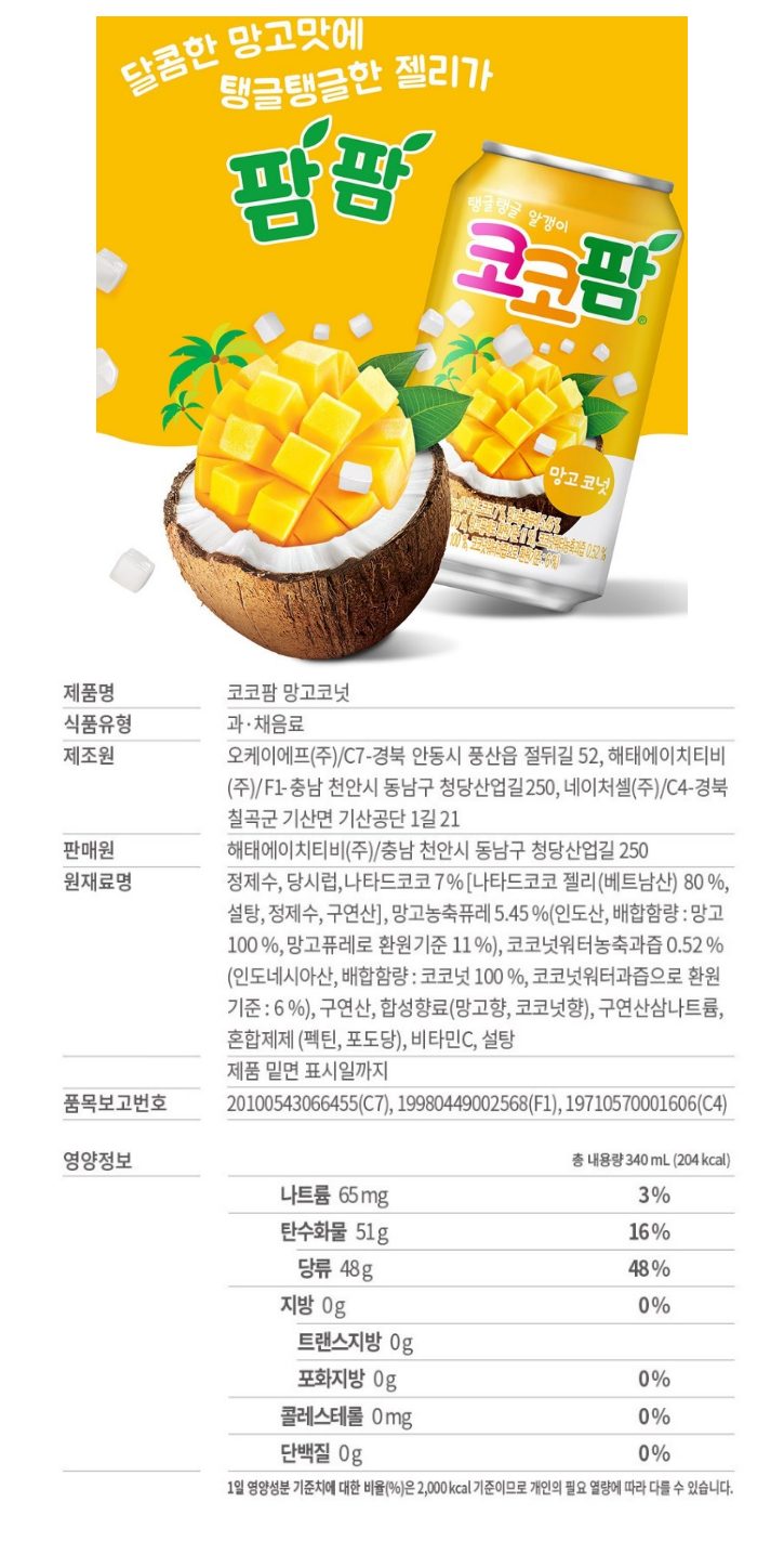 해태음료)코코팜망고 340캔X24_CP4615