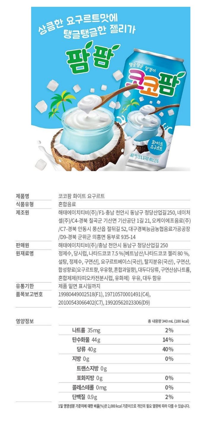 해태음료)코코팜화이트 340캔X24(요구르트)_CP4271