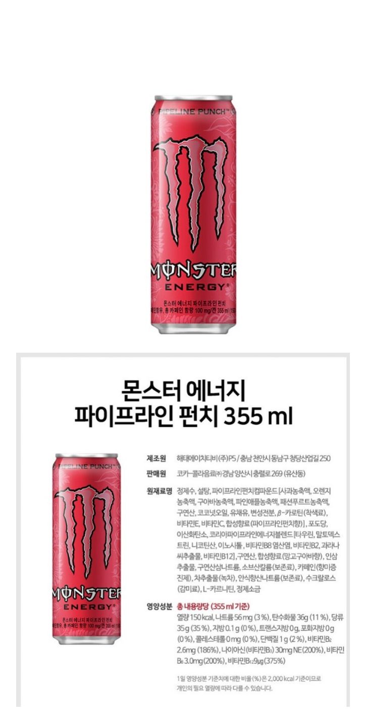 코카)몬스터 파이프라인펀치355캔x24 핑크_MO5635