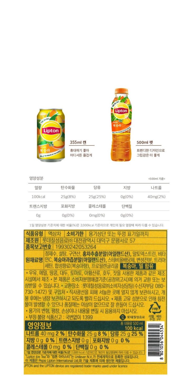 롯데칠성)립톤제로 복숭아아이스티500펫(6입)_18929@