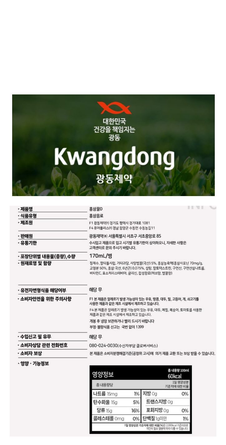 광동)홍삼벌꿀D병_170ml(10*4)_70925