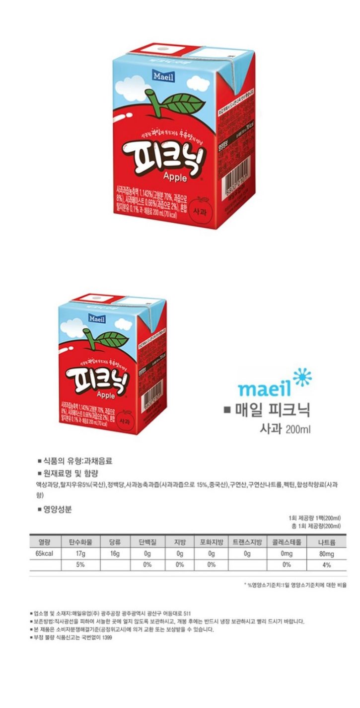 매일)피크닉 사과팩 200ml(24)_107113