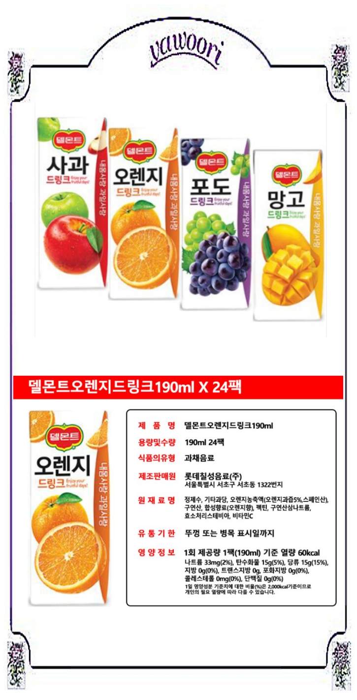 롯데칠성)델몬트오렌지드링크190팩(32)_11317@
