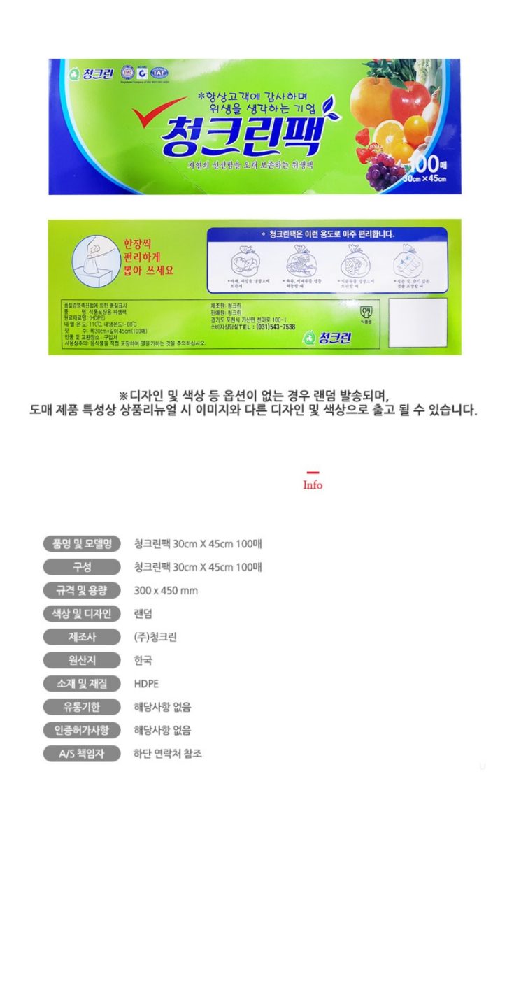 청크린)청크린팩대100매30*45(50)