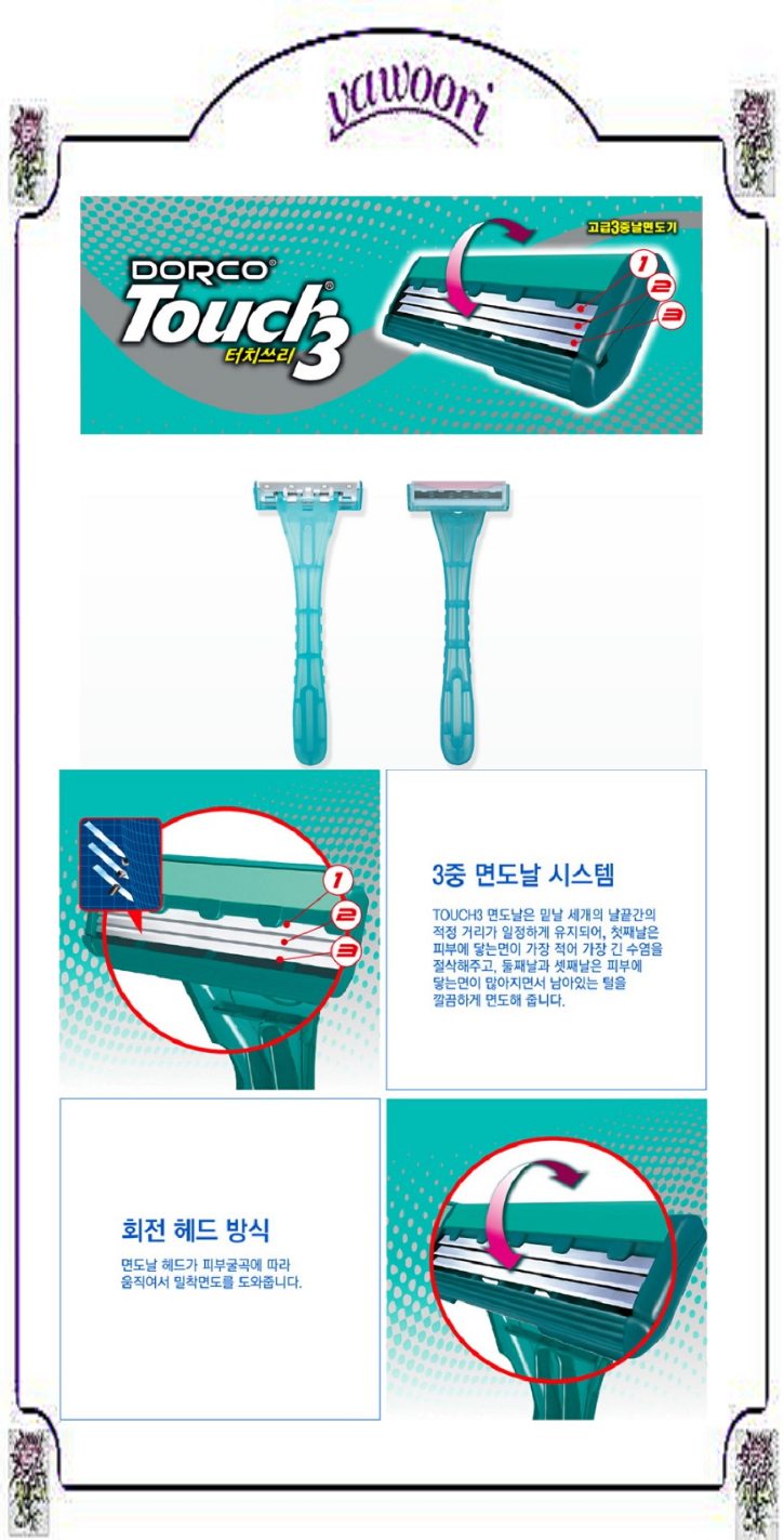 위펀)도루코)터치3일회용면도기(1P)/중앙공용(100)
