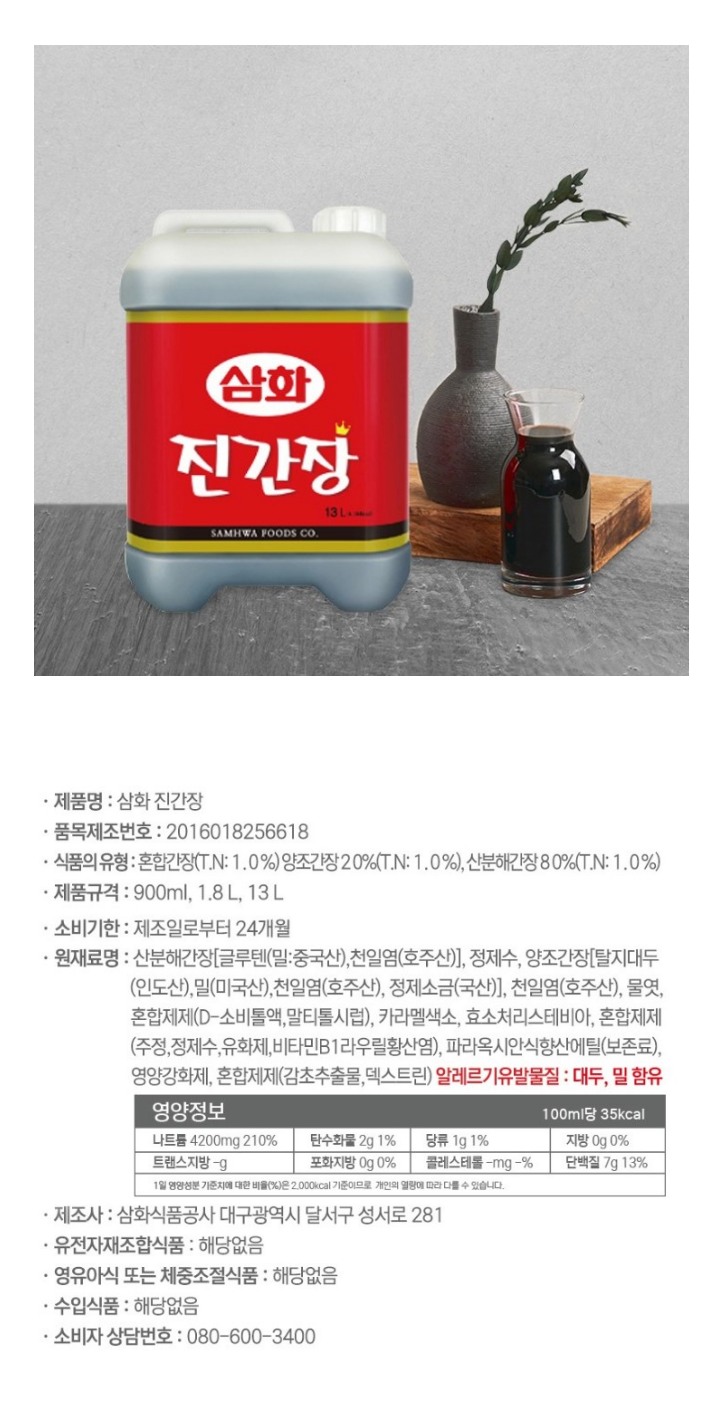 식)삼화진간장 13L