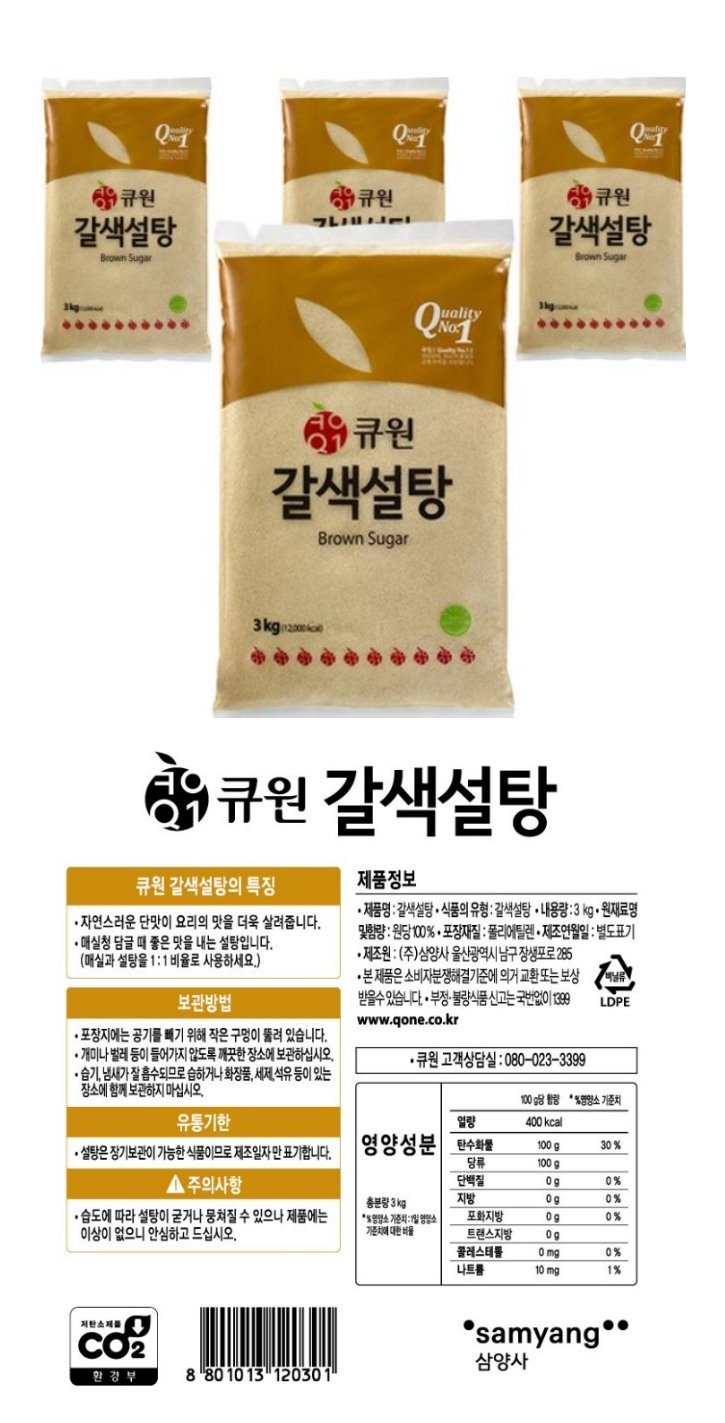 식)갈색설탕(큐원)3kg/1박스8입
