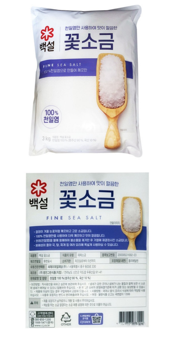 식)꽃소금3kg(백설)1박스6입