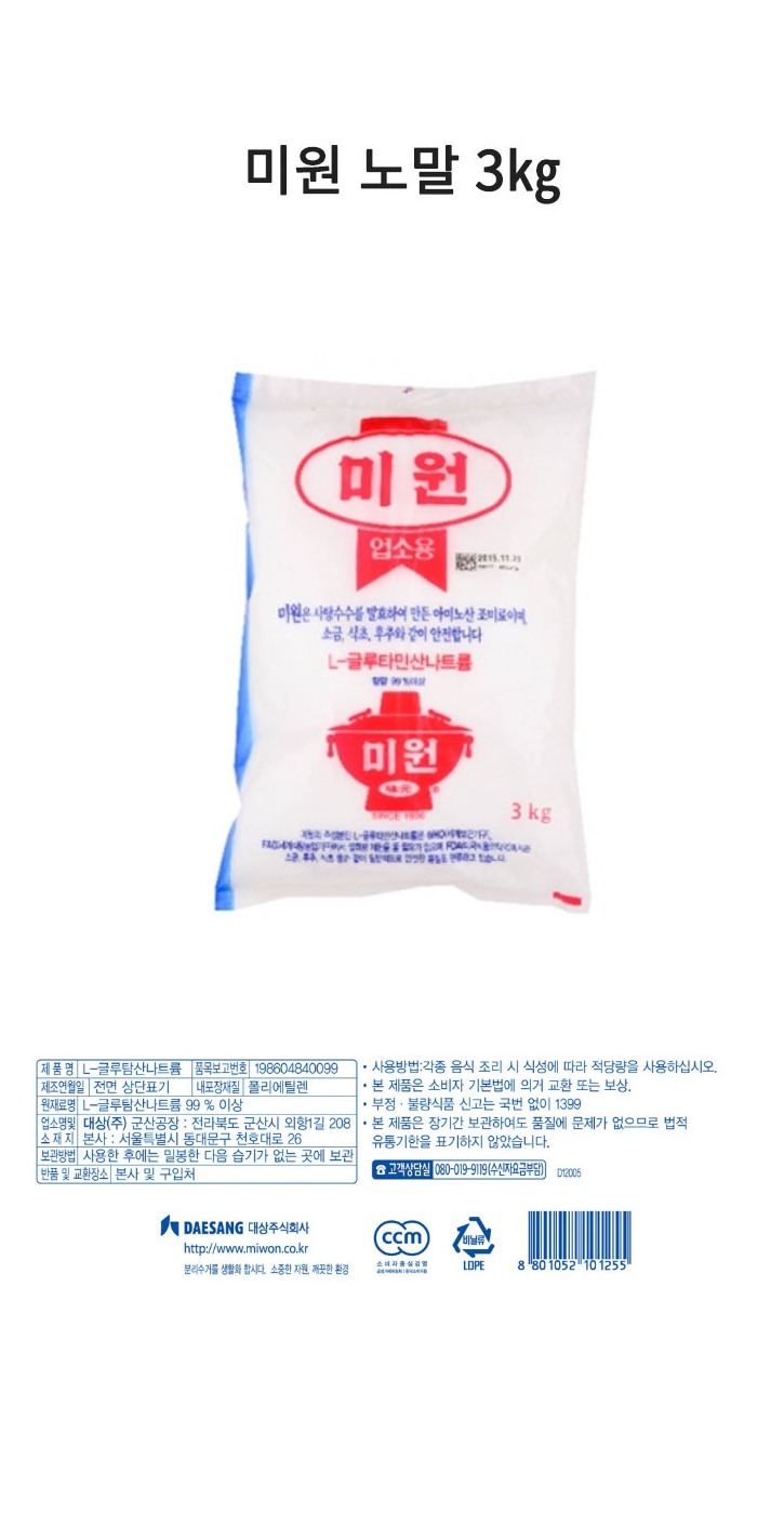 식)미원노말조미료3kg/1박스7입