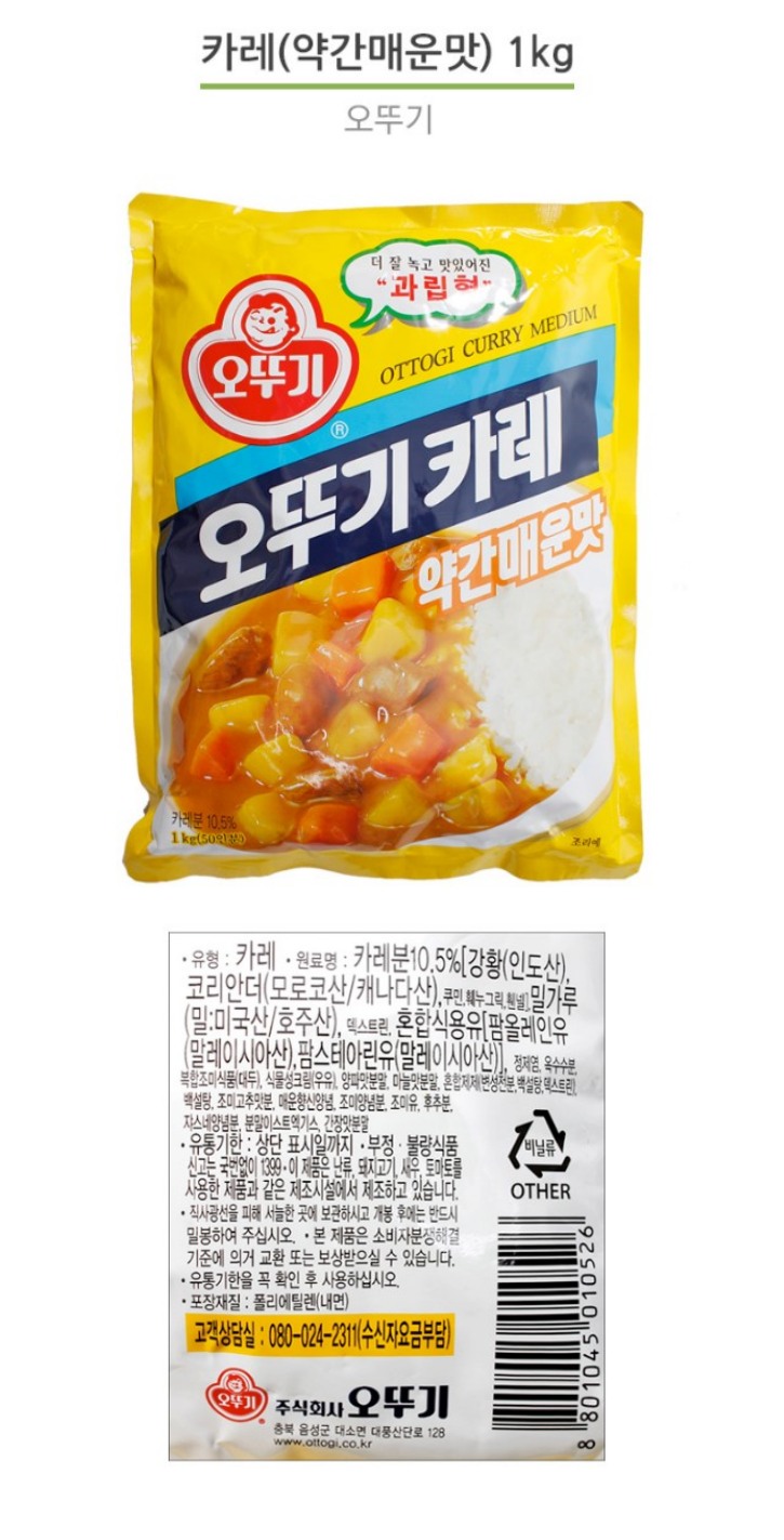 식)오뚜기카레약간매운맛1kg/1박스10입