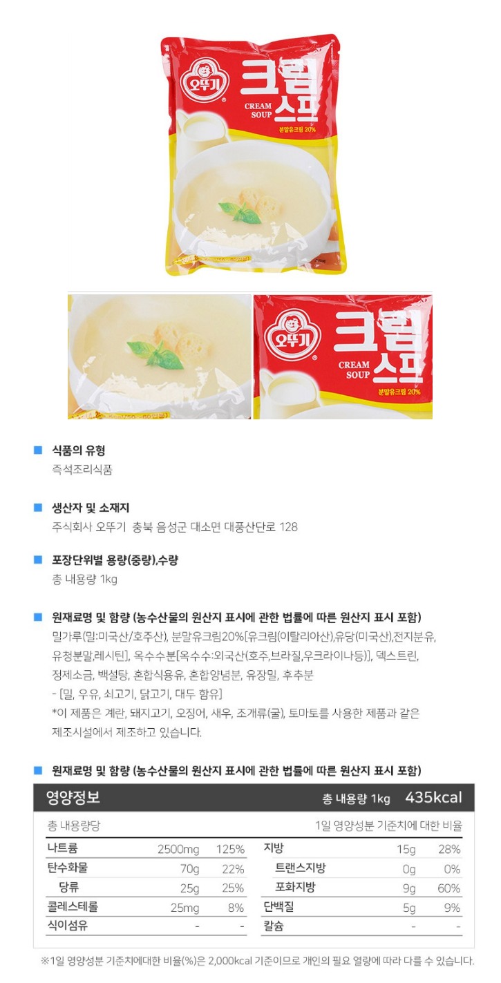 식)크림스프1kg(오뚜기)/1박스10입