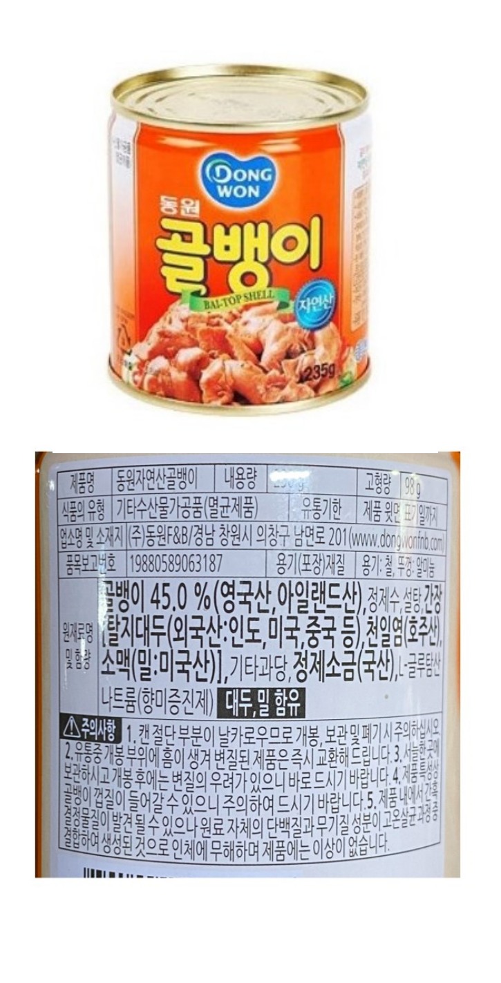 식)골뱅이(동원)중230g/1박스24입