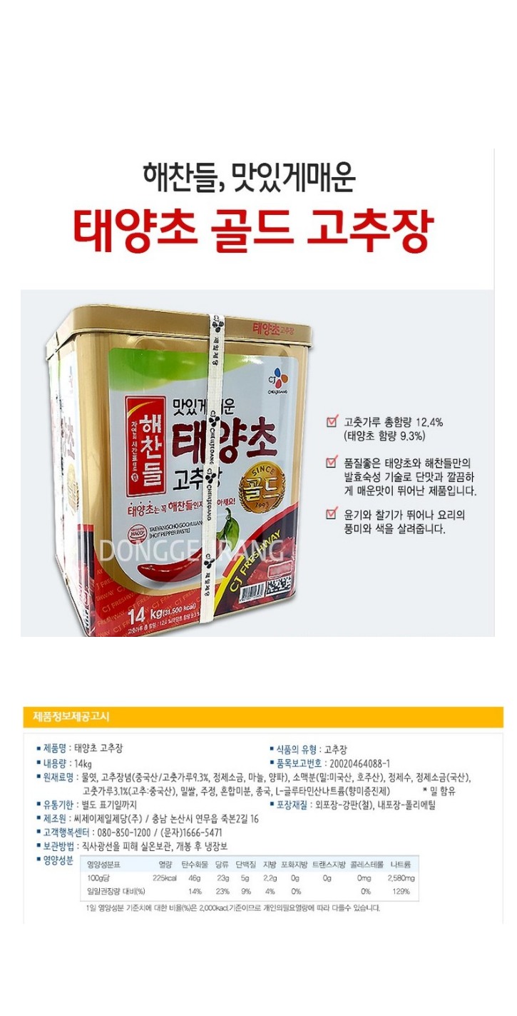 • 식)태양초골드고추장14kg(해찬들)