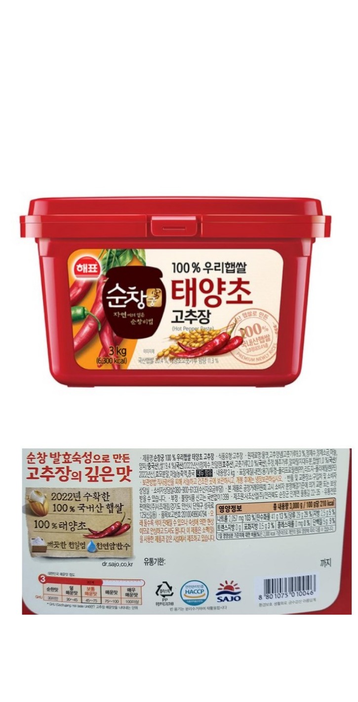 식)순창궁태양초고추장3kg(해표)/1박스4입