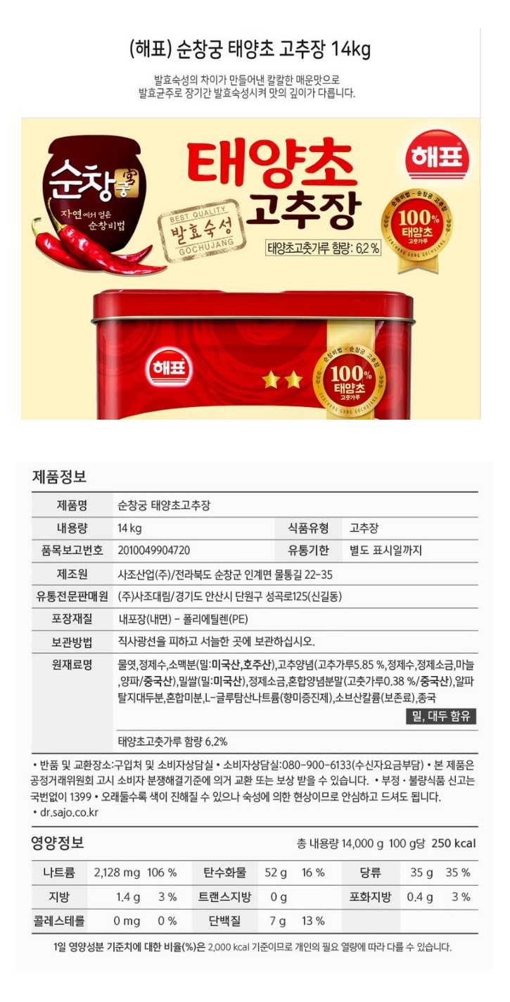 식)순창궁태양초고추장14kg(해표)