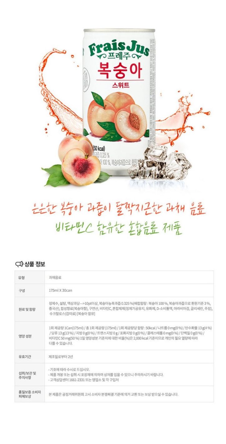 일화)프레주스위트복숭아175ml캔